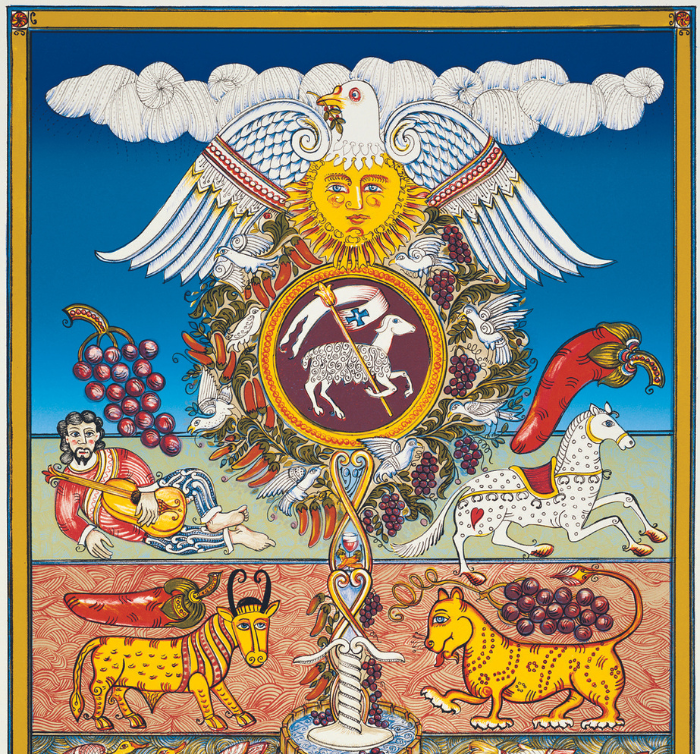A Santa Fe native, Ruthling was born in the original St. Vincent Hospital (now the site of the Drury Hotel) in 1933, and passed away in 2015 after a long and varied career in watercolor, tin, wood, clay, iron and paper. His oil paintings of Pueblo Indian pottery were featured on a series of U.S. postage stamps in 1977, and as he liked to say, “Some artists do one thing only, but I like to explore all the possibilities.”